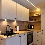 Este apartamento fornece quartos com varanda e TV juntamente com cozinha.
